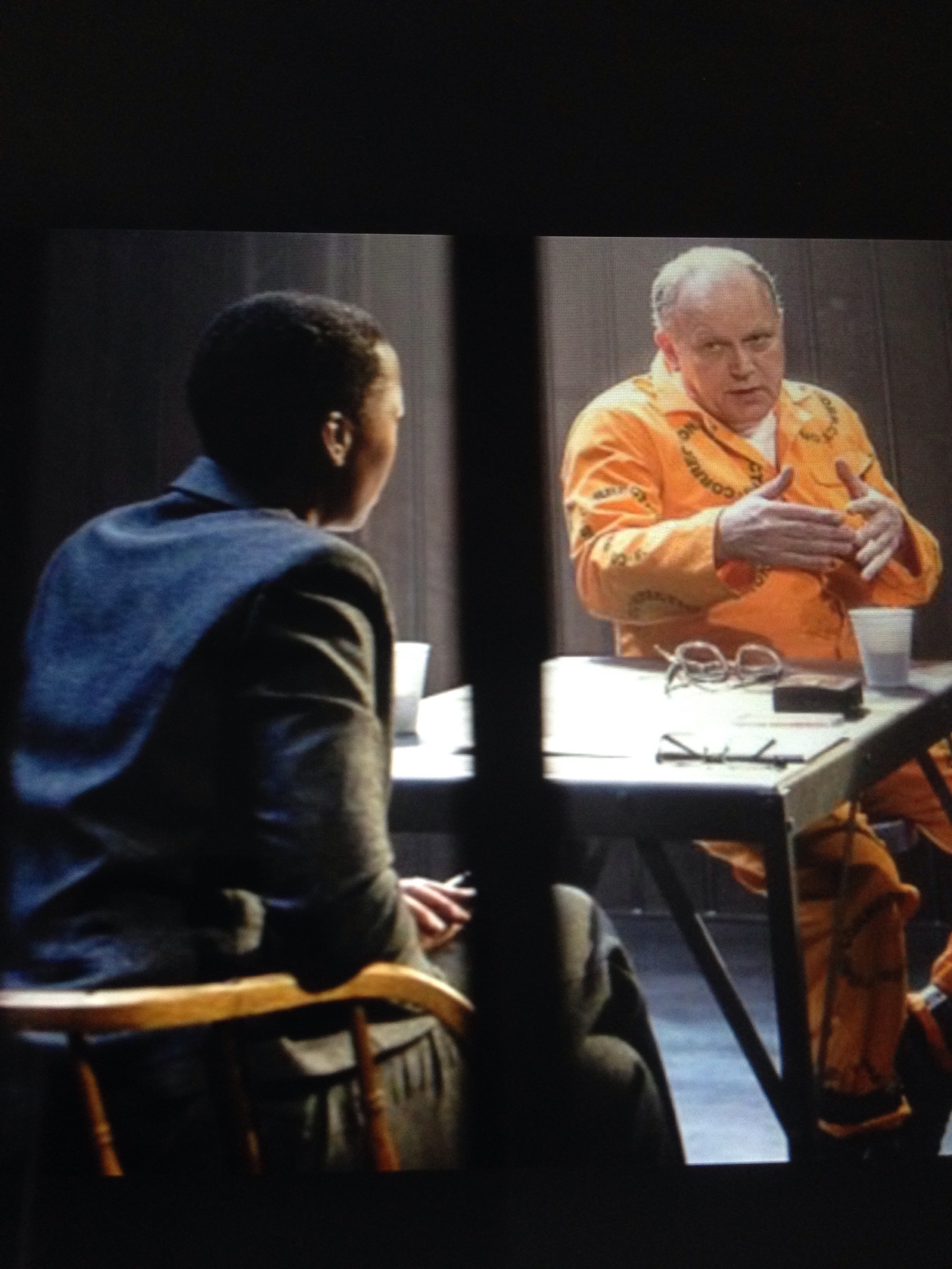 After the nullification of apartheid and the election of President Mandela, the Truth and Reconciliation Committee was promulgated to hold accountable those who were responsible for the assassinations of innocent South Africans. Madikizela was part of the committee. She visited de Kock and recorded their conversations to try to understand what happened during his reign of terror and to forgive him for his horrific acts. This theatrical performance is condensed to one hour and twenty minutes. Because the play is based on a series of authentic prison interviews, the play takes place in a “cell” with limited movement by the characters. The audio design gives us the feeling of a prison as well as a constructed prison cell. There are very few props and the lighting is limited to light streaming on the two characters. Madikezela is dressed professionally and de kock is dressed in an orange prison jumpsuit until the end of the performance when he is given privileges because of his good behavior (this shows his transformation). It flows like a theatrical documentary, but the issues that are discussed and explored are relevant for all of us, regardless of race or domicile. Many social issues such as AIDS, domestic violence, and women’s rights are explored, but these issues appear to be forced into the dialogue and do not flow as well as the main issues of truth and reconciliation and the causes of violent behavior (whether violence is learned or innate).
